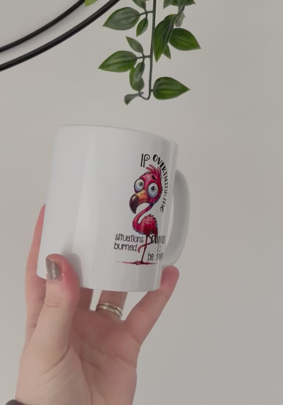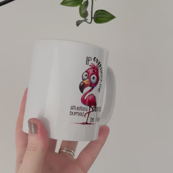 Funny Flamingo Mug, If Overthinking Burned Calories I’d Be Super Fit, Sarcastic Coffee Cup, Humour Gift for Overthinkers